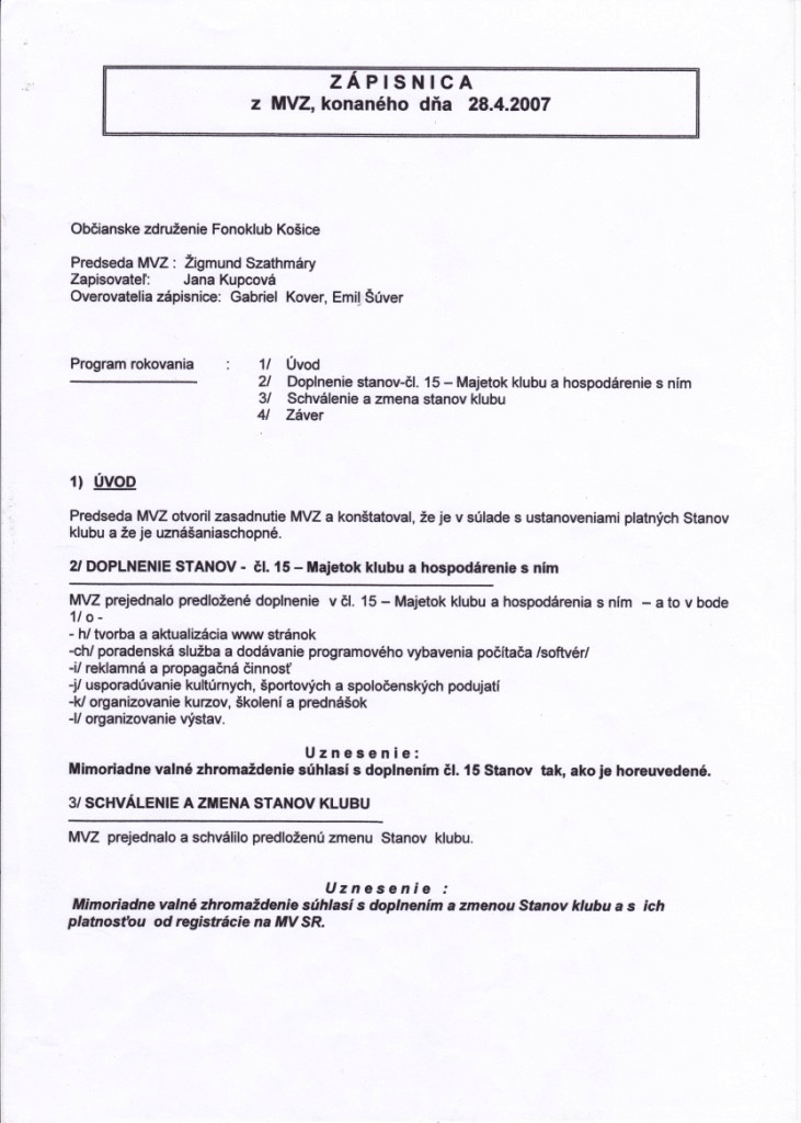 zápisnica z 28.4.2007
